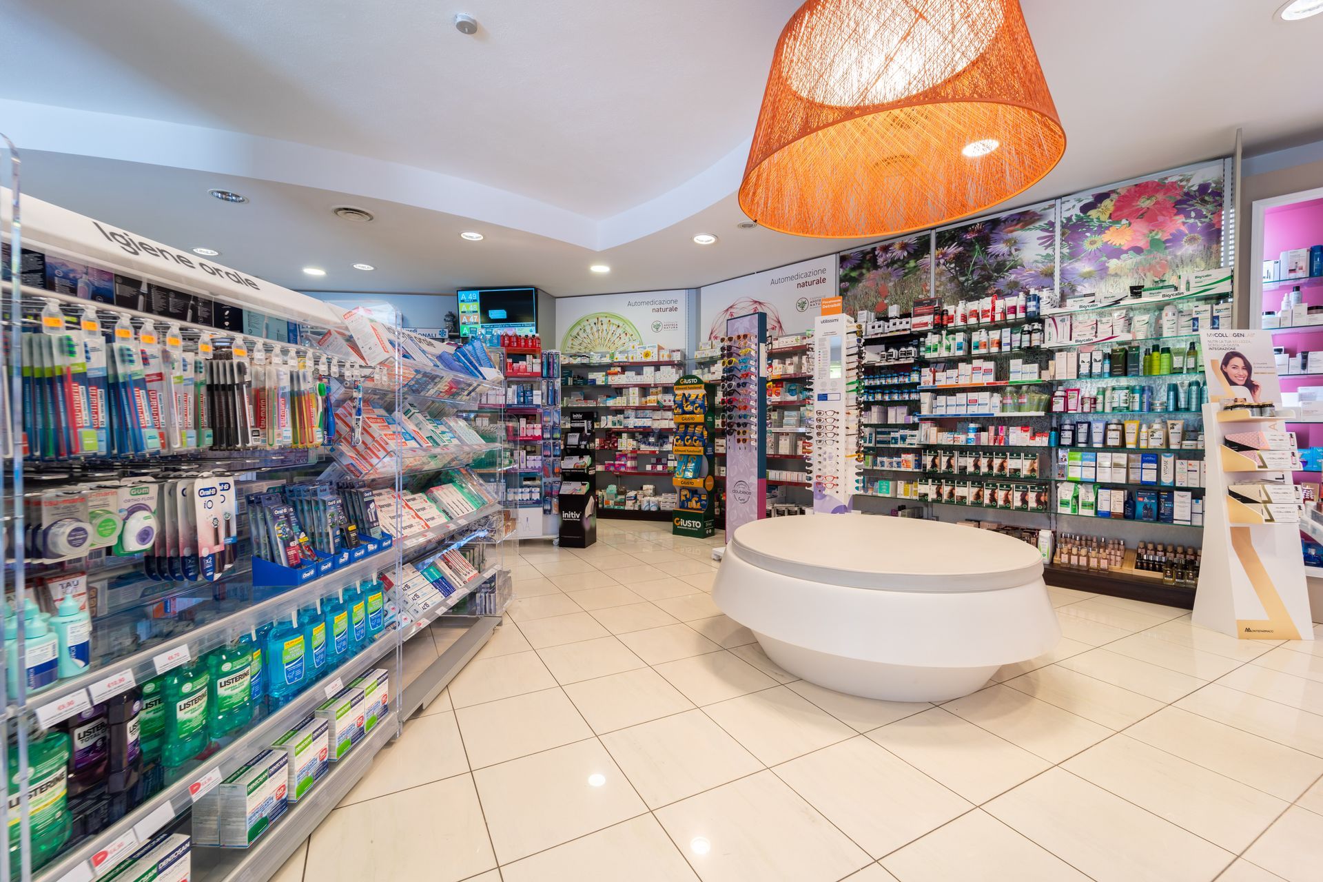 Presso i grandi spazi espositivi della farmacia, ordinatamente divisi per reparti, i clienti troveranno un vasto assortimento di farmaci, ma anche prodotti per dietetici, omeopatici ed erboristici, prodotti alimentari specifici per le intolleranze e per l'infanzia.